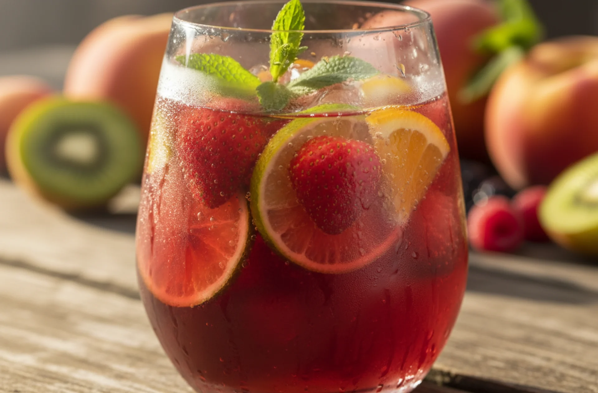 En cuanto a la fruta, se pueden añadir todas las que queramos, pero es importante que en nuestra lista de ingredientes esté presente el melocotón, ya que, sin él, no sería lo mismo.