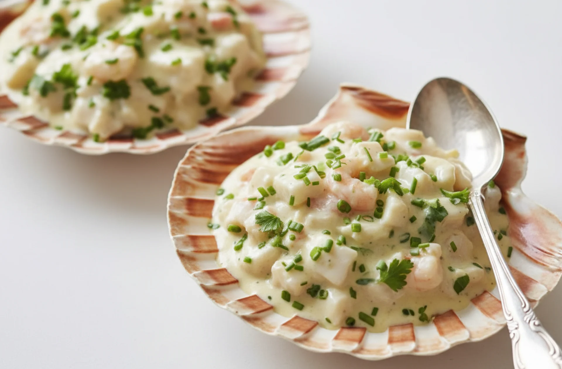 Es bastante habitual que cuando tenemos invitados, nos bloqueemos y solamos quedarnos sin ideas para saber qué preparar en esa cena o comida tan especial. Es por ello que hoy queremos proponerte una receta perfecta para servirla como entrante para las cenas o comidas que todavía están por llegar. Vieiras rellenas, una receta en la que utilizarás sus conchas como plato y que rellenarás, además de con su carne, con unos trozos de rape, con unas gambas y todo ello cubierto de una cremosa salsa bechamel. ¡Tus platos brillarán con luz propia en tu mesa de fiesta!.